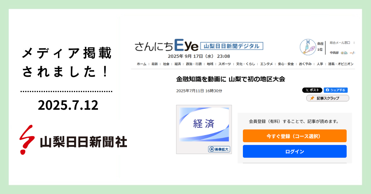 2025年7月12日付の山梨日日新聞にて、当機構の「FESコンテスト 山梨県地区大会」と地区大会のキックオフイベントについて掲載されました。記事は「山梨日日新聞デジタル」でもご覧いただけます。