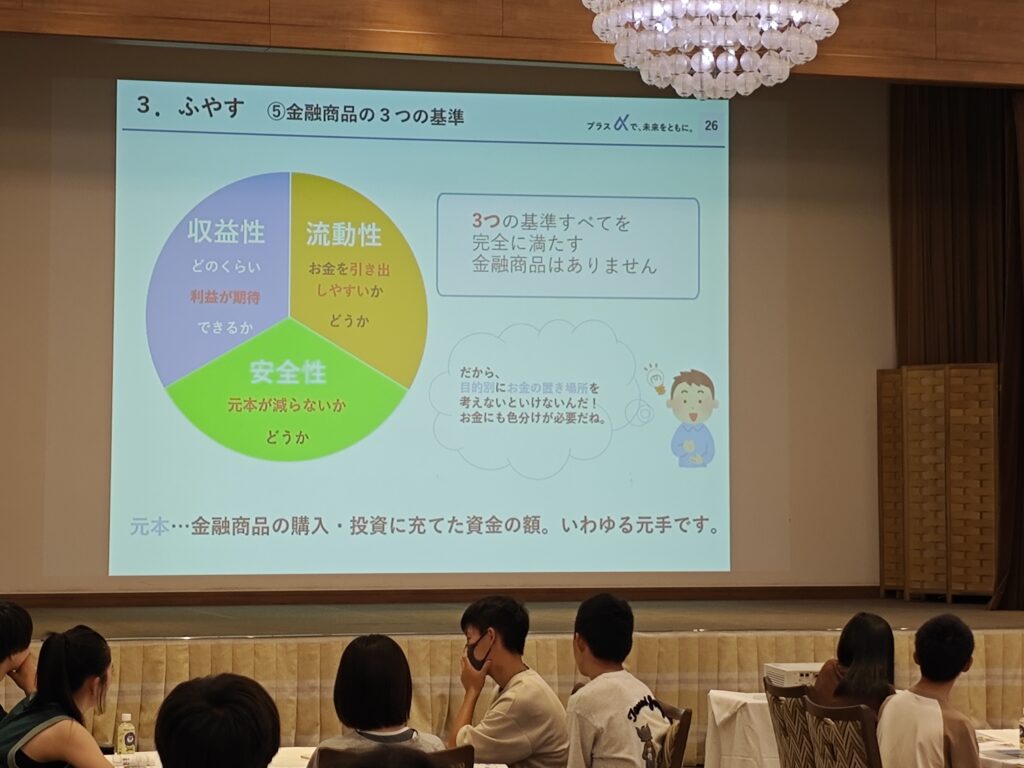 続いて、京葉銀行様による「生活設計と知っておきたい金銭管理のポイント」講座を実施しました。貯金や資産形成に関するクイズも交えたことで、参加者は楽しみながら学びを深めることができました。全問正解者には記念品が手渡され、受け取った参加者の嬉しそうな表情が印象的でした。