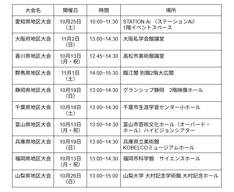 以下のボタンから、各地区大会の受賞者のリストをご覧いただけます。