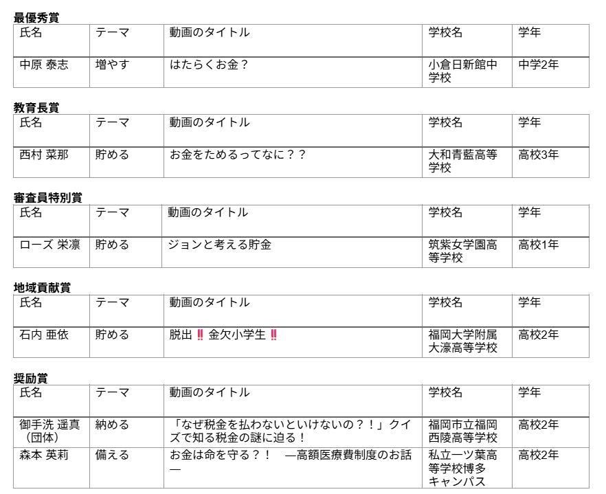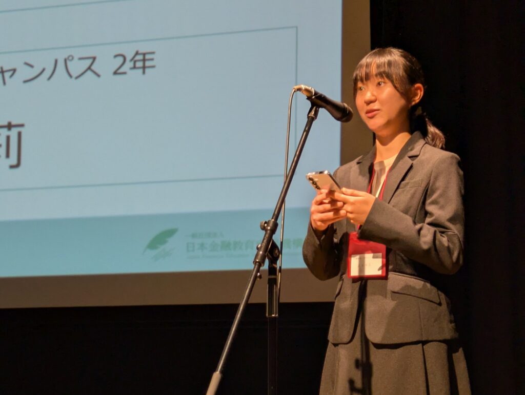 FESコンテストでは、小学生向けの金融教育教材となるショート動画を中高生が制作し、その教育的効果や伝える力を競います。表彰式では、各受賞者が動画の披露とともに2分間のプレゼンテーションを行い、動画に込めた想いや工夫した点についてご来賓や来場者の方々に伝えました。