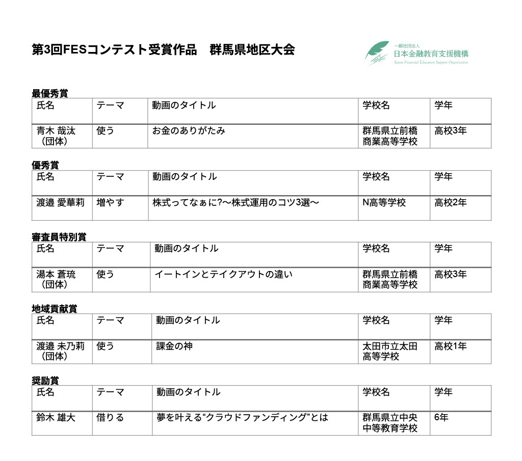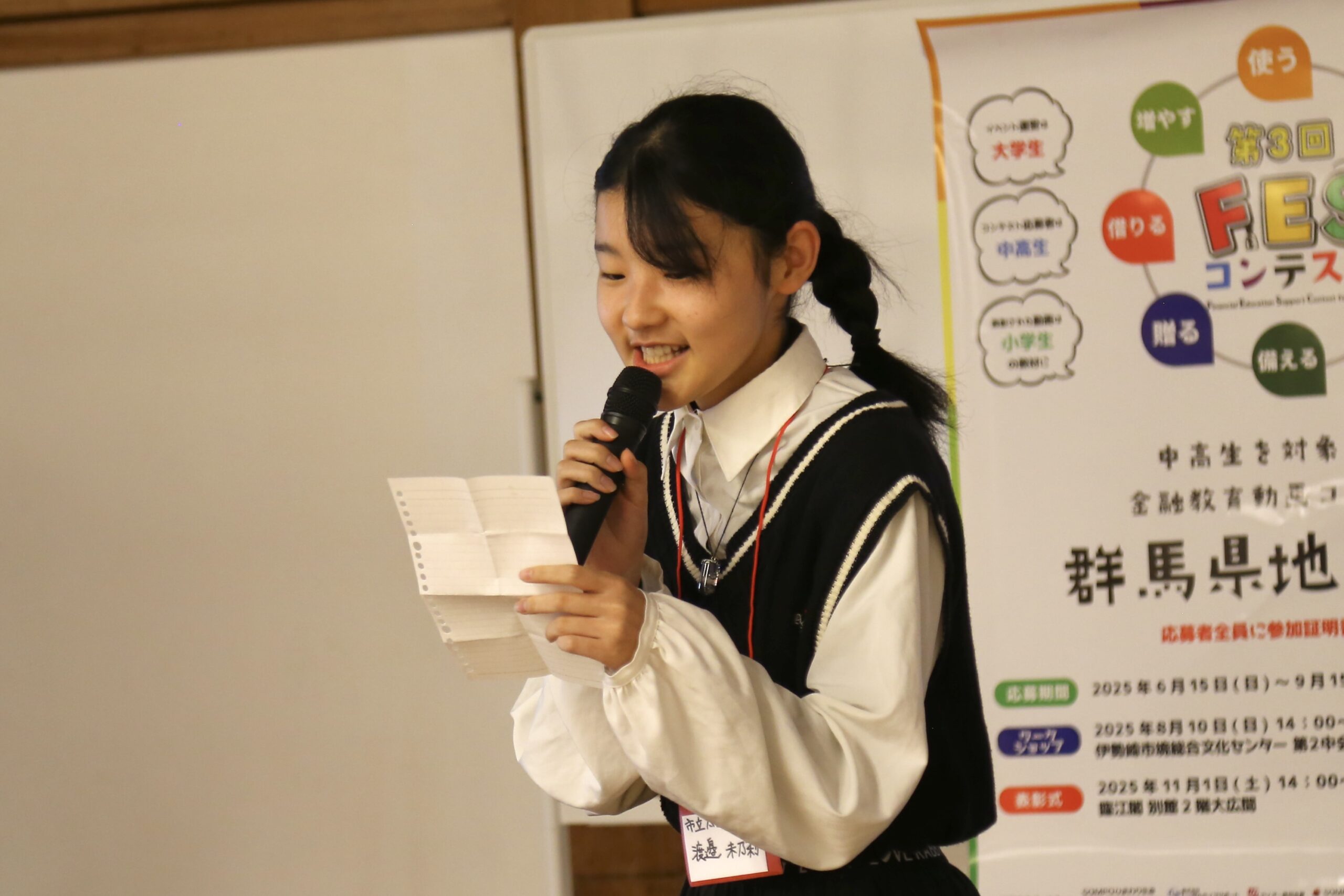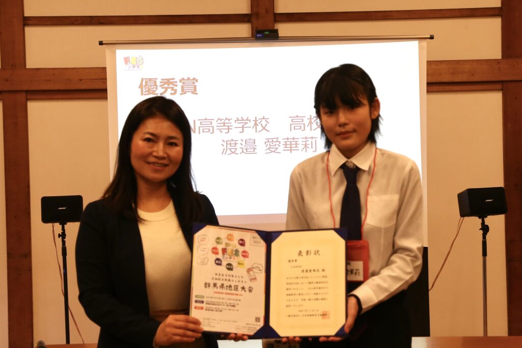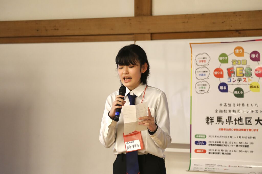 群馬県で初開催となった地区大会では、全国大会へ出場する代表作品が選ばれました。「お金のありがたみ」をテーマにした作品は、日常生活に潜むリスクを独自の視点で表現した点が高く評価されました。