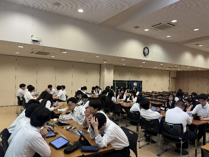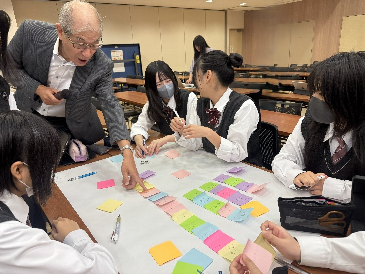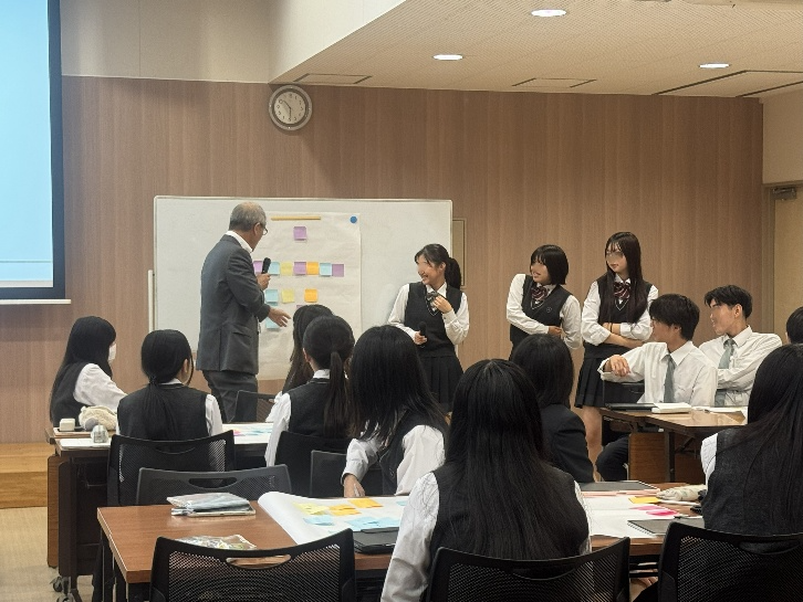 この授業は、年間を通じて全3回実施されるプログラムの最終回として行われました。今回は、生徒の皆さんが夏休み期間中の課題として取り組んだ『第3回FESコンテスト』への応募作品をもとに、アウトプットや意見交換を目的としたグループワークを実施しました。