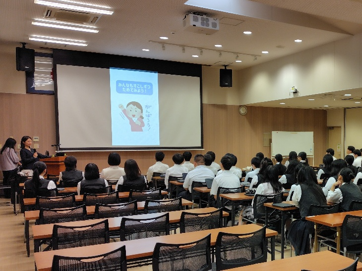 2025年10月15日、福岡県直方市の大和青藍高等学校にて、キャリアコース3年生56名を対象とした金融教育の出前授業を実施しました。本授業は今年度3回目の開催となり、45分×2コマの構成で実施。講師は細川善弘と德永智穂が務めました。