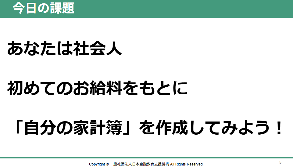 授業は、お金の知性を磨き、自立した未来を設計するための特別授業「新社会人シミュレーションゲーム」を実施。生徒たちが卒業後の「社会人生活」を具体的にイメージし、お金を「稼ぐ・使う・貯める・増やす」ための実践的な知識を身につけることを目的として、90分(45分×2コマ)の構成で、講義とワークショップを組み合わせた体験型の授業を行いました。