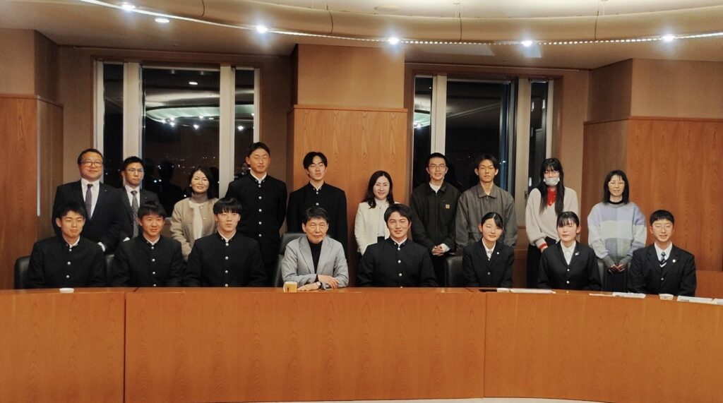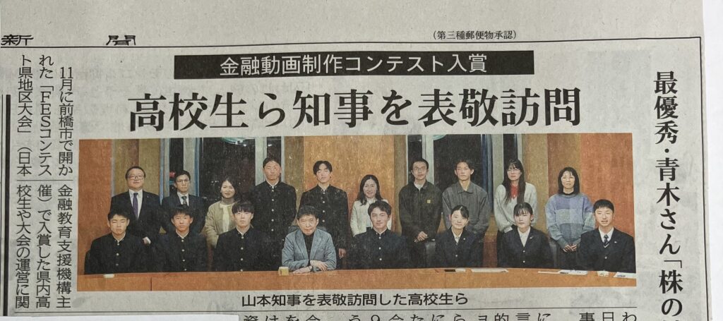 2025年12月23日、当機構が主催する「第3回FESコンテスト 群馬県地区大会」の受賞報告のため、同大会で受賞した群馬県内の高校生が群馬県庁を訪れ、山本一太群馬県知事を表敬訪問しました。