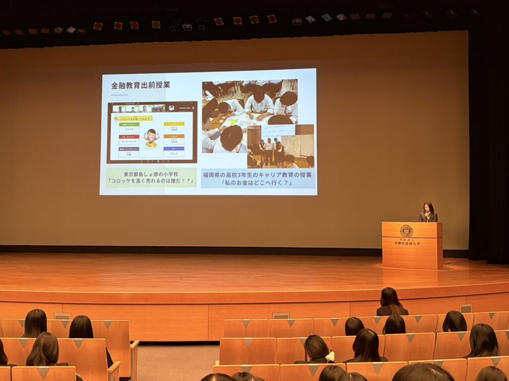 また、若い世代が金融について主体的に学ぶ取り組みとして、「FESコンテスト」についても紹介。出前授業の様子や、福岡県地区大会、全国大会で中高生や大学生が真剣に課題に取り組む姿を伝え、金融教育が実社会とどのようにつながっているかを説明しました。