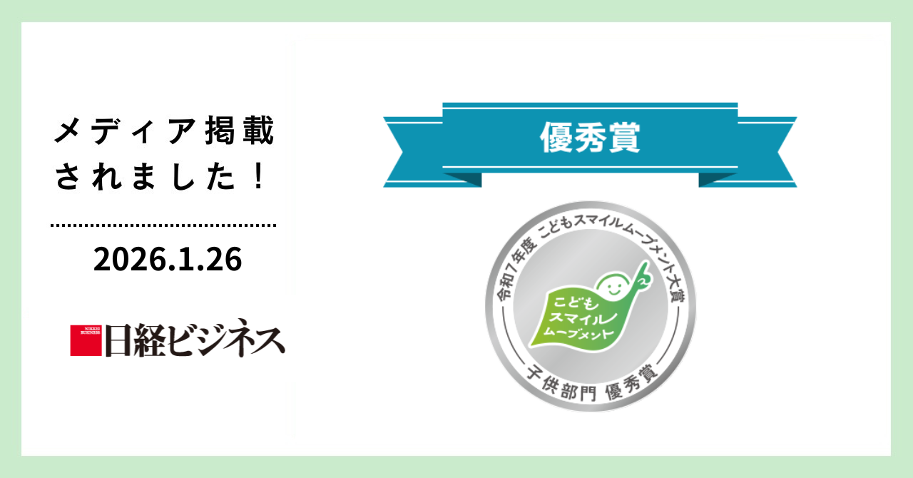 2026年1月26日に発行された日経ビジネスにて、当機構が東京都「令和7年度こどもスマイルムーブメント大賞」優秀賞受賞企業として掲載されました。