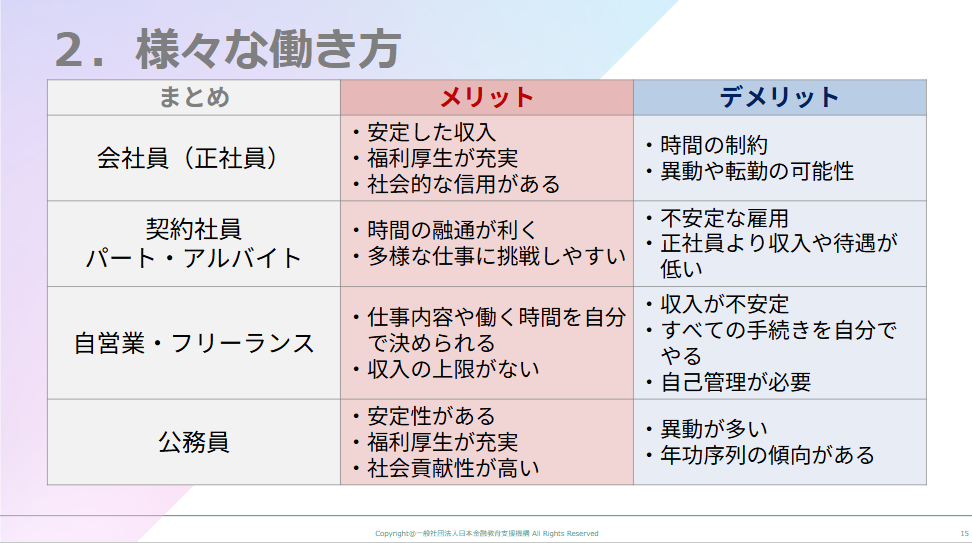 後期では、前期で学習した金融リテラシーの内容を振り返りながら、より実生活に近い視点で理解を深めました。