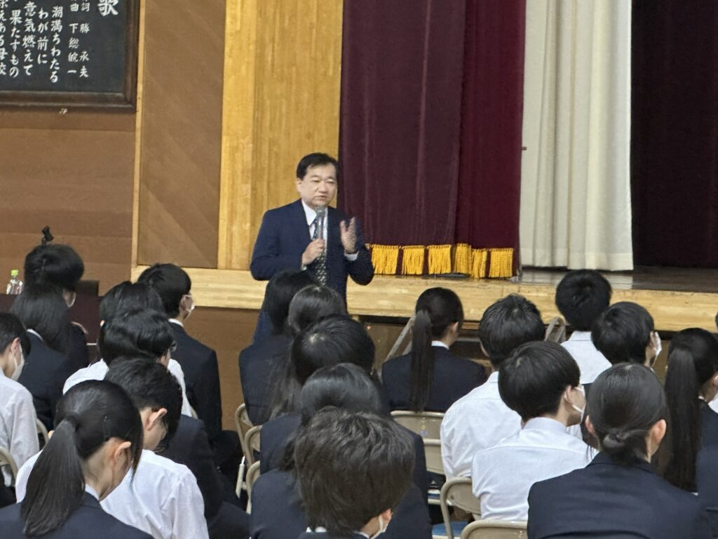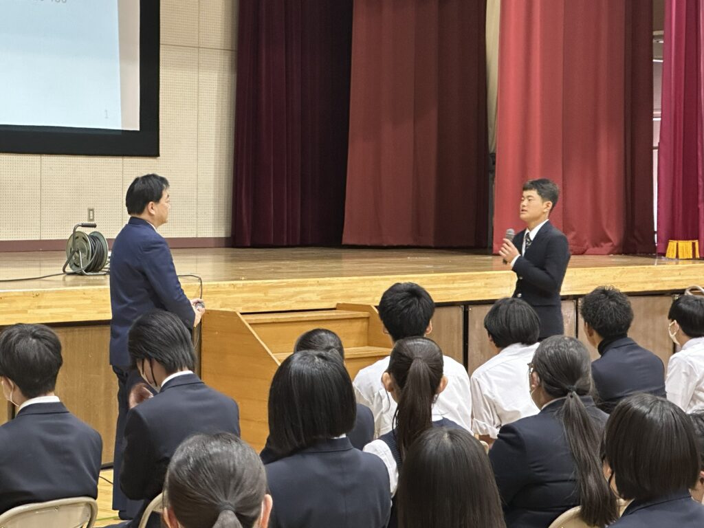 講義の途中にはクイズ形式の問いかけを取り入れ、生徒に挙手で答えてもらうなど、参加型の授業として進行しました。生徒たちは積極的に反応し、終始明るく前向きな雰囲気の中で授業が行われました。