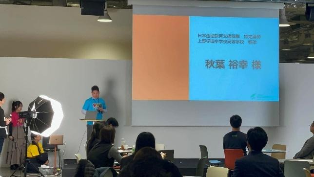 発表では、金融リテラシーにおける地域差や教育機会の偏りといった現状の課題に触れつつ、教育現場と外部講師が連携した金融教育の実践事例が共有されました。