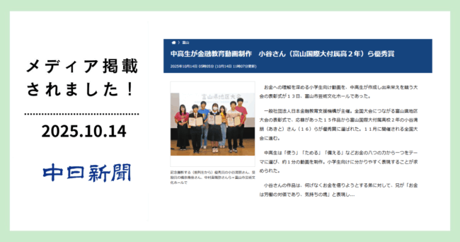 2023年の夏休みに高校生向けのワークショップ「社会に出る前に知っておきたいお金のこと」が、“リセマム“”に掲載されました。