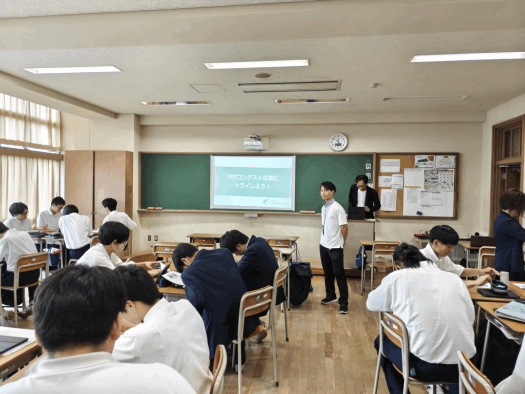 おもに、機構から講師を招き、本校生徒のFESコンテスト参加に向けた出前授業を企画してきました。出前授業後には、FESコンテストに応募する動画の制作を夏休みの宿題としています。また、FESコンテスト地区大会やワークショップの運営協力もしており、機構のオンラインセミナーに登壇したこともあります。