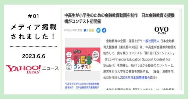 受賞作品は、第2回FESコンテスト全国大会の最終審査にエントリーされます。また、当機構が開催する金融教育の授業、ワークショップ他、当機構関連のYouTubeチャンネルでの掲載など、金融教育のために幅広く活用させていただくことを予定しております。